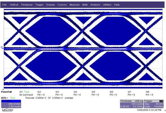 本次測試將主要驗證產(chǎn)品上4個以太網(wǎng)100Base-TX接口的技術(shù)指標(biāo)。對于其中比較直觀的100Base-TX物理層的眼圖模板,《ANSI+X3_263-1995》標(biāo)準(zhǔn)中有著明確的眼圖模板定義見圖2。