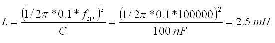 根據(jù)電磁干擾的屬性及濾波器元件的復(fù)雜特性,電容C1和C2起始選擇了100 nF電容。選擇的差分電感L1用于提供L-C濾波器頻率,約為開關(guān)頻率的1/10。所使用的電感值是: