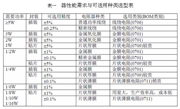 一、電阻器的歸一化選型方向總結