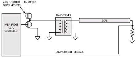 推挽驅(qū)動器有很多好處:這種架構(gòu)只用到n通道MOSFET(圖4),這有利於降低成本和增加轉(zhuǎn)換器效率;它很容易適應(yīng)較高的轉(zhuǎn)換器直流電源電壓;采用更高的轉(zhuǎn)換器直流電源電壓時,只需選擇具有合適的漏-源擊穿電壓的MOSFET即可。不管轉(zhuǎn)換器的直流電源電壓如何,都可采用同樣的CCFL控制器。但采用n通道MOSFET的全橋和半橋架構(gòu)就無法做到這一點。