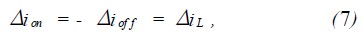 Δion為導通狀態(tài)紋波電流;ton為導通時間;Δioff為關斷狀態(tài)紋波電流;toff為關斷時間。