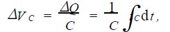 首先計算第一部分。當ΔiC流過理想電容C時,在C兩端產(chǎn)生的電壓變化: