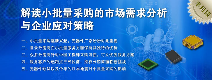 元器件缺貨以及今年的日本地震會(huì)給某一些,特別是日本的原廠的生產(chǎn)帶來(lái)直接的影響,或許會(huì)造成更多的元器件缺貨的問(wèn)題,所以有時(shí)候,目錄分銷(xiāo)商的一些數(shù)量不多的庫(kù)存可能會(huì)被客戶(hù)很快的一次性拿走,就不能再服務(wù)其他客戶(hù)。這是小批量采購(gòu)受到的影響因素之一。