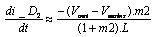 tD2_ON時(shí)間趨勢(shì)支持功率因數(shù)校正應(yīng)用,因?yàn)閂mains 電壓最低時(shí),I1 電流最大。因此,即變?cè)趷毫拥臈l件下,例如,最低Vmains電壓下的高輸出負(fù)載電流,BC²電路仍然能夠保證斷續(xù)模式。此外,為消除二極管D2 的反向恢復(fù)電流效應(yīng),因?yàn)榉瓷潆妷篤NS2低的原因,必須使dI/dt_D2 總是保持低斜率,通過(guò)下面公式計(jì)算dI/dt_D2:
