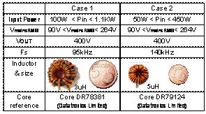 表2:用于不同類(lèi)型功率因數(shù)校正器的L線圈的電感和尺寸[page]