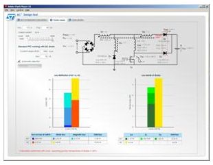 該軟件設(shè)計(jì)工具可以提供微型線圈和主功率因數(shù)校正器的輔助線圈的參數(shù)、二極管選型和功率MOSFET的RDS(on)。還可算出每個(gè)組件的功率損耗,并與使用一個(gè)碳化硅二極管的功率因數(shù)校正器對(duì)比。