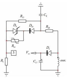 在眾多設(shè)計中,必須保護適配器免受熱失控(如適配器殼體內(nèi)溫度超過特定值)影響。我們可以通過跟齊納二極管(D10)串聯(lián)一個負(fù)溫度系數(shù)(NTC)電阻(R14)來應(yīng)用簡單的 OTP(如圖 3 所示)。當(dāng)溫度升高時,NTC電阻開始下降,并升高引腳 3 的電壓。當(dāng)引腳 3 的電壓電平達(dá)到 3 V 時,器件就簡單地閂鎖,并要求復(fù)位,然后重啟。