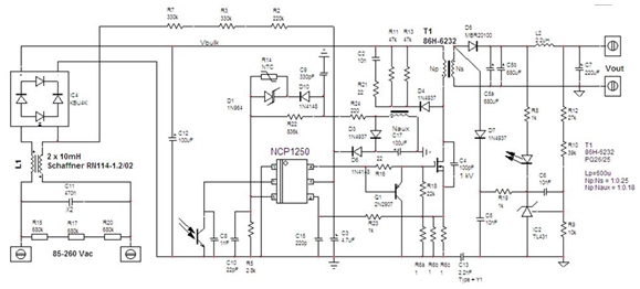 - 采用NCP1250設(shè)計65W適配器示例