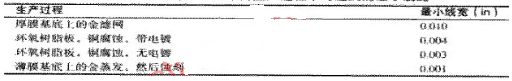 走線寬度上的第二個不太重要的限制來自生產(chǎn)制造過程。表1列出了在各種不同的生產(chǎn)過程中可達到的最小走線寬度。