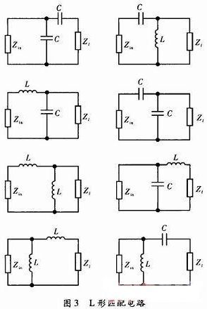 L形匹配電路:這類電路具有線路簡潔和成本較低的優(yōu)點(diǎn),缺點(diǎn)是窄帶電路。由于要考慮匹配和功率的損耗,盡量使用電感和電容性的元件,因此共有8種基本的電路可供選擇。要設(shè)計(jì)合理的匹配電路就要選擇合適的電容電抗元件參數(shù),計(jì)算元件參數(shù)有兩類方法:通過阻抗直接計(jì)算和通過史密斯圓圖。前者的優(yōu)點(diǎn)是計(jì)算精確且適合計(jì)算機(jī)計(jì)算,后者是一種直觀有效的設(shè)計(jì),可以充分合理地選擇最優(yōu)性能?,F(xiàn)在可以通過使用計(jì)算機(jī)和功能強(qiáng)大的軟件直接設(shè)計(jì)。