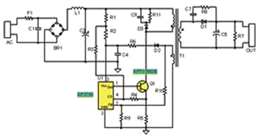 1. 基于最新的LED專用驅(qū)動(dòng)芯片AP3766,采用原邊控制方式,無須光耦和副邊電流控制電路,實(shí)現(xiàn)隔離恒流輸出,電路結(jié)構(gòu)簡(jiǎn)單。通過電阻R5檢測(cè)原邊電 流,控制原邊電流峰值恒定,同時(shí)控制開關(guān)占空比,保持輸出二極管D1的導(dǎo)通時(shí)間和整個(gè)開關(guān)周期時(shí)間比例恒定,實(shí)現(xiàn)了輸出電流的恒定。