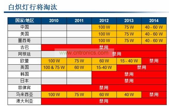 Power Integrations產(chǎn)品營銷經(jīng)理Andrew Smith道:“所有的國家都是先從大功率的100W白熾燈開始淘汰,接下來才是75W等小功率的白熾燈。歐盟在2010年就淘汰了100W白熾燈,美國、中國等則是在2012年開始淘汰。所以市場上對于能替換100W白熾燈的大功率LED是有非常強(qiáng)勁的市場需求的。”