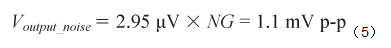 跨導(dǎo)放大器的輸入噪聲應(yīng)乘以此增益。ADA4505-2的0.1 Hz至10 Hz輸入電壓噪聲為2.95 μV p-p,因此輸出端的噪聲為: