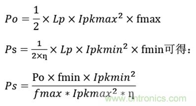 由上式可得,待機(jī)功耗的大小跟變壓器電感量大小,變換器具體的峰值電流無(wú)關(guān),只與設(shè)計(jì)的最高工作頻率與芯片最低工作頻率比以及最大設(shè)計(jì)峰值電流和最小峰值電流比有關(guān)。根據(jù)芯片規(guī)格書得: