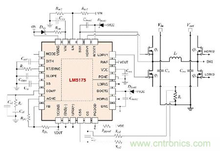 圖2.具有電流模式控制器的4開關降壓-升壓轉(zhuǎn)換器的電路原理圖。