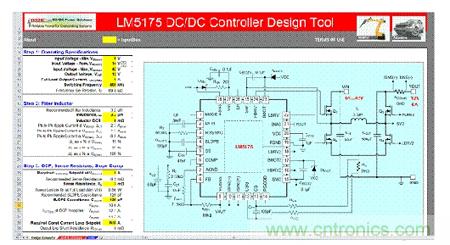 圖3. 步驟1到3分別是指運行技術規(guī)格、電感器篩選和電流感測。這個電路原理圖是根據(jù)輸入的以及計算出來的組件值自動組裝而成。