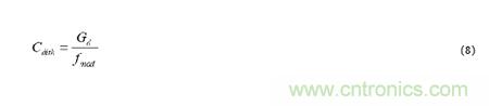 下一個選項是使用方程式8來選擇抖動電容值,以設定展頻調(diào)制頻率[5],在這里,Gd是與控制器相關的電導系數(shù)。