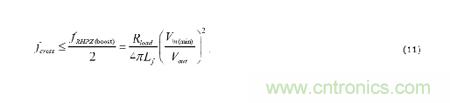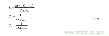 要微調(diào)已經(jīng)增加的帶寬,只需增加補償電阻RC,并且按照需要調(diào)整針對相位裕量的CC1。當然,與升壓相關的右半平面零點 (RHPZ),以及交叉頻率低于RHPZ頻率的50%,實現(xiàn)可以接受的相位裕量等約束條件由以下方程式給出: