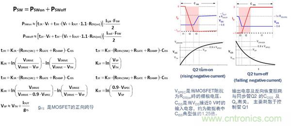 對(duì)于高頻應(yīng)用(>MHz),控制管Q1的選用應(yīng)針對(duì)降低開關(guān)損耗進(jìn)行優(yōu)化。Q1損耗的計(jì)算公式如下: