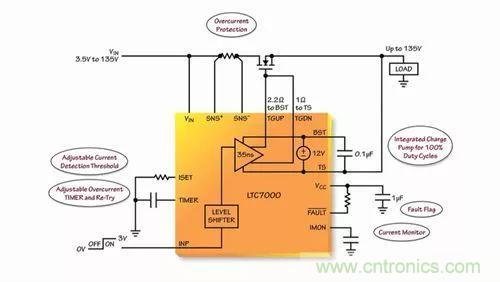 ADI 電源產(chǎn)品組的設計工程師 Mark Mullen 就上述問題為大家分享了一個基于LCT7000受保護的高壓側(cè)驅(qū)動器解決方案。