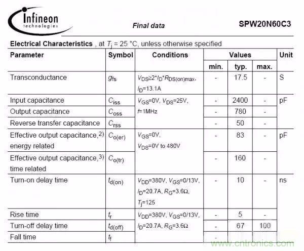 參照以上兩圖,是不同型號(hào)的MOS管,對(duì)比下輸入結(jié)電容和輸出結(jié)電容,2400PF與800PF;780PF與2200PF;一看就知道第一個(gè)規(guī)格是快管,第二個(gè)是慢管,這時(shí)候決定開(kāi)關(guān)速度還要與驅(qū)動(dòng)電阻匹配;常規(guī)情況驅(qū)動(dòng)電阻在10R-150R比較多,選取驅(qū)動(dòng)電阻與結(jié)電容有關(guān),針對(duì)快板驅(qū)動(dòng)電阻可適當(dāng)增大,慢管驅(qū)動(dòng)電阻可適當(dāng)減小; 對(duì)于二極管,有肖特基二極管,快回復(fù)二極管,普通二極管,還有一種用的比較少的SIC二極管,開(kāi)關(guān)速度SIC二極管幾乎為零,等于是沒(méi)有反向恢復(fù),開(kāi)關(guān)輻射最小,并且損耗也最小,唯一的缺點(diǎn)就是價(jià)格昂貴,故很少用;其次就是肖特基二極管,正向壓降低,反向恢復(fù)時(shí)間短,依次是快回復(fù)和普通二極管;需要在損耗和EMC之間折中;一般可采取改吸收以及套磁珠等措施整改EMC;
