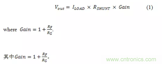 計(jì)算放大器的增益。運(yùn)算放大器放大VSHUNT以產(chǎn)生VOUT_MIN到VOUT_MAX的輸出電壓擺幅,其中VOUT_MIN和VOUT_MAX分別是放大器的最小和最大輸出擺幅極限。公式3用于計(jì)算放大器產(chǎn)生所需的輸出擺幅的增益: