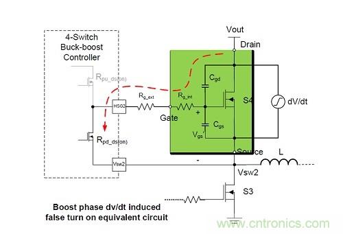 然后,這一問題在4開關(guān)降壓-升壓轉(zhuǎn)換器中翻了一番,因?yàn)樗袃蓚€階段——降壓和升壓。當(dāng)設(shè)計人員直接將降壓轉(zhuǎn)換器的電路參數(shù)復(fù)制到4開關(guān)降壓-升壓轉(zhuǎn)換器的升壓段時,就會產(chǎn)生錯誤。隨著這種拓?fù)浣Y(jié)構(gòu)在應(yīng)用中越來越受歡迎,了解dv/dt電感導(dǎo)通問題變得越來越重要。