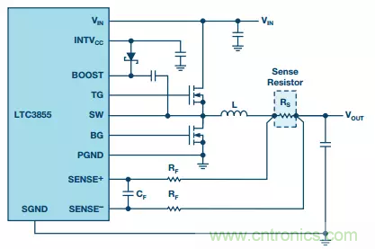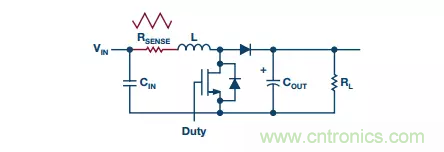 圖3. 帶高端RSENSE的降壓轉(zhuǎn)換器