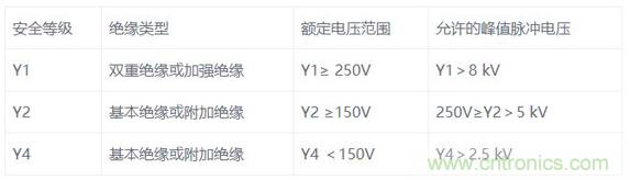 我們都知道Y電容是安規(guī)電容,是跨接L線地以及N線與地之間的電容,它的作用是抑制共模干擾。現(xiàn)在一共有三種等級,分別是是Y1, Y2, Y4。由于漏電流不能太大這是安規(guī)要求,漏電流太大人體觸摸用電器會有一種麻麻的感覺,因此一般Y電容容量大小為1nF到4.7nF之間。