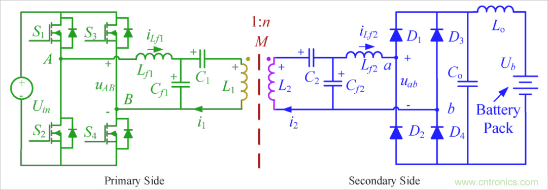 為了適應(yīng)負(fù)載的波動,往往采用LCC電路補償形式。它可以在了負(fù)載變化的情況下,維持發(fā)送線圈中的電流恒定,從而提高了系統(tǒng)的穩(wěn)定性。