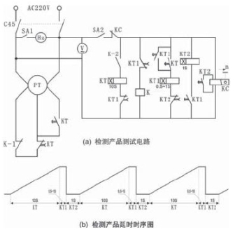 以被測產(chǎn)品工作AC220V,延時時間10S,測試AC220V試驗電路示于圖1(a)。