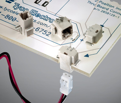 泰科電子此次推出的全新SMT通板連接器具備2位至6位并使用表面貼裝技術(shù),運用時穿過電路板使接口轉(zhuǎn)至PCB板的背面,該連接器的反向設計使得在建筑、住宅及某些商業(yè)應用上的固態(tài)LED 照明的安裝操作更為簡便。該連接器與標準型Mini CT連接器完全匹配。Mini CT連接器適合24 AWG電線,額定電流為3安培。
