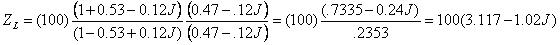 舉個例子,用100歐姆阻抗表征的復(fù)合回波損耗S11 = 0.53 - 0.12J 轉(zhuǎn)換到90歐姆的如下: