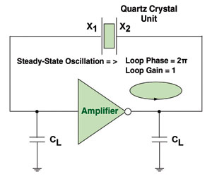 如果皮爾斯拓?fù)浣Y(jié)構(gòu)的非線性增益大于某個最小值,而且非線性延時提供了滿足接近石英晶體單元串聯(lián)諧振頻率相移條件的足夠相移,它就可以很好地使振蕩頻率接近石英晶體串聯(lián)諧振頻率而使振蕩器進入穩(wěn)態(tài)。如果振蕩能夠滿足這些條件,當(dāng)放大器延遲改變時,輸入/輸出放大器的波形幅值包跡將隨著時間增加,直到穩(wěn)態(tài)振蕩條件得到滿足。在許多情況下,當(dāng)峰峰值輸出幅值達到供電電壓和地之間的差值時,放大器增益就可以達到一個基本不變的穩(wěn)態(tài)值。