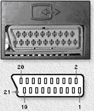 SCART接口見圖4。不同信號(hào)有不同的定義,有的設(shè)備雖然只有一個(gè)SCART口,但通過(guò)菜單設(shè)置可以定義不同的功能。表1、2、3分別表示SCART口做復(fù)合視頻、S視頻、RGB信號(hào)的定義。