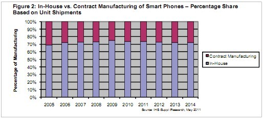- 2014年合同制造商生產的手機份額將只有27.9%