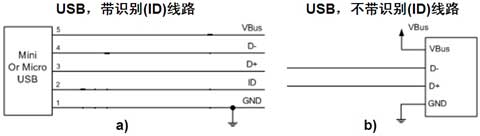 USB 2.0接口在便攜設(shè)備中的應(yīng)用范圍非常普及,在用戶(hù)的日常使用中也有著極高的使用頻率,故需要為高速的USB接口提供可靠的ESD保護(hù)。圖2顯示的是速度達(dá)480 Mbps的USB 2.0高速應(yīng)用在帶識(shí)別(ID)線(xiàn)路及不帶ID線(xiàn)路兩種情況下的簡(jiǎn)明結(jié)構(gòu)示意圖。[page]