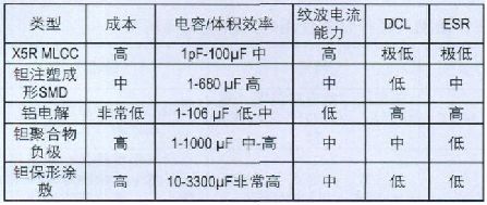 MLCC具有良好的低DCL特性,但在某些情況下,鉭電容能夠以更小的體積提供同樣低的DCL.表5 比較說明了根據(jù)DCL要求正確評估和選擇合適的電容的計算方法。如表5所示,鉭電容一般按照DCL最大值來確定規(guī)格。標準二氧化錳 (MnO2)構造的鉭電容在生產(chǎn)廠家處是按照 (。01xCV) 進行分級的。某些電容生產(chǎn)廠家還會隨DCL信息提供具體的保壓時間,并且根據(jù)比同級別的DCL最大值低得多的具體DCL限值進行電容器的預篩選。