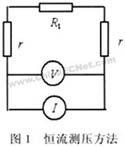 本文主要介紹恒流測(cè)壓法。當(dāng)被測(cè)電阻阻值遠(yuǎn)遠(yuǎn)大于測(cè)試引線電阻和測(cè)試探針與測(cè)試點(diǎn)的接觸電阻時(shí),采用圖1所示的兩線測(cè)試的基本方法是可行的,并且也可以獲得相當(dāng)高的測(cè)試精度。