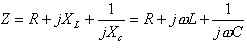 當(dāng)一個(gè)組件的電阻值和電感值都是已知,例如:一個(gè)「附導(dǎo)線的鐵粉珠(ferritebead-on-lead)」、一個(gè)電阻、一個(gè)電容、或其它具有寄生組件的裝置,必須考慮阻抗大小會(huì)受到頻率的影響,這時(shí)可以應(yīng)用下列的公式: