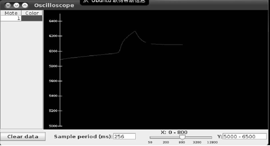 TinyOS是UC Berkeley開發(fā)的開放源代碼操作系統(tǒng),專為嵌入式無線傳感器設(shè)計(jì),操作系統(tǒng)基于構(gòu)件的架構(gòu)使得快速更新成為可能,而這又減小了受傳感器網(wǎng)絡(luò)存儲(chǔ)器限制的代碼長(zhǎng)度。TinyOS的構(gòu)件包括網(wǎng)絡(luò)協(xié)議、分布式服務(wù)器、傳感器驅(qū)動(dòng)及數(shù)據(jù)識(shí)別工具。其良好的電源管理源于事件驅(qū)動(dòng)執(zhí)行模型,該模型也允許時(shí)序安排具有靈活性。因此對(duì)于整個(gè)無線傳感器網(wǎng)絡(luò)的驗(yàn)證采用TinyOS操作系統(tǒng),設(shè)計(jì)為兩個(gè)節(jié)點(diǎn),節(jié)點(diǎn)A負(fù)責(zé)采集溫度濕度數(shù)據(jù),然后將采集到的數(shù)據(jù)發(fā)送到另一個(gè)節(jié)點(diǎn)B,節(jié)點(diǎn)B接收到數(shù)據(jù)后,通過USB將數(shù)據(jù)傳輸?shù)絺€(gè)人電腦,并將該數(shù)據(jù)通過圖表顯示,如圖10所示。