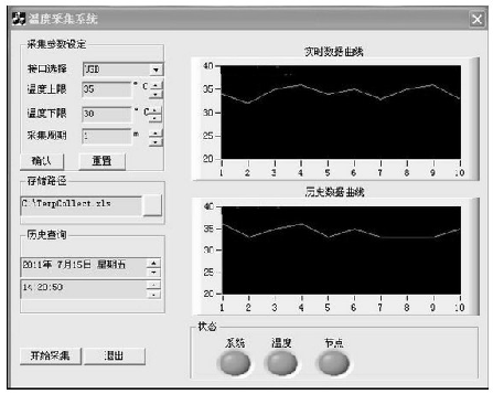 采用CC2531作為溫度數(shù)據(jù)的匯聚節(jié)點(diǎn),采用IEEE 802.15.4協(xié)議組成一個(gè)由10個(gè)采集終端組成的星狀網(wǎng)絡(luò),對終端節(jié)點(diǎn)的溫度進(jìn)行采集。終端節(jié)點(diǎn)硬件由CC2530實(shí)現(xiàn),溫度傳感器采用DS18B20.上位機(jī)由Visual C++編寫,實(shí)現(xiàn)數(shù)據(jù)的實(shí)時(shí)顯示,并實(shí)現(xiàn)數(shù)據(jù)的存儲(chǔ)和歷史溫度查詢。CC2531的USB設(shè)備描述符里聲明PID=0x1000,VID=0x0451,UBS驅(qū)動(dòng)采用Windows XP系統(tǒng)提供的usbser.sys.溫度采集結(jié)果如圖5所示。