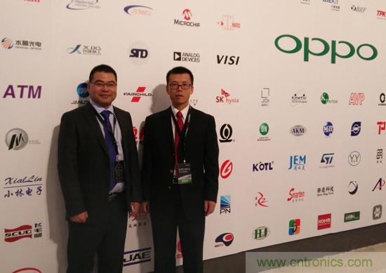 廣東歐珀資源開發(fā)部部長(zhǎng)劉波先生 (左) 與 Fairchild 大中華地區(qū)副總裁賴長(zhǎng)青先生 (右) 在頒獎(jiǎng)禮上合照
