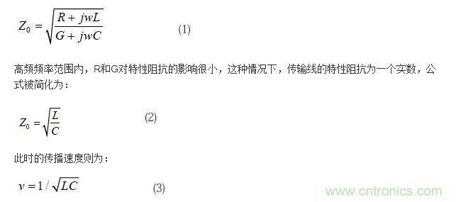 傳輸線內(nèi)的信號在傳輸過程中,將即時信號外加電壓與內(nèi)通電流的比值稱為信號的瞬態(tài)阻抗。當傳輸線沿途的瞬態(tài)阻抗為恒定值時,這個值就被稱為傳輸線的特性阻抗,表達式為: