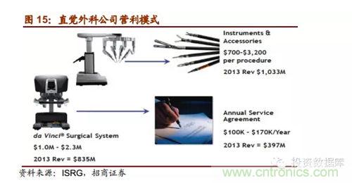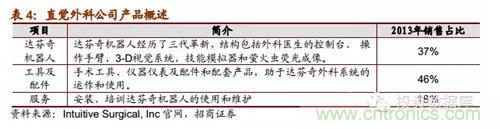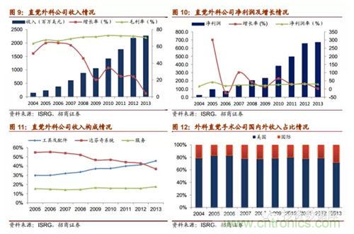 直覺外科公司是全球領(lǐng)先的微創(chuàng)機(jī)器人輔助手術(shù)機(jī)器人公司,2013年?duì)I收達(dá)22.65億美元,截止2014年第一季度達(dá)芬奇機(jī)器人累計(jì)銷售數(shù)量為3039臺(tái),2014年8月總市值達(dá)159.60億美元。