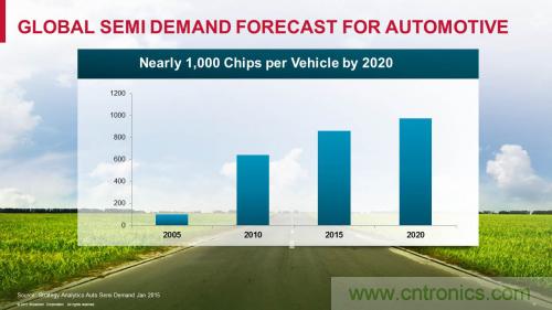 圖 1:汽車(chē)半導(dǎo)體正蓬勃發(fā)展,據(jù)分析人士預(yù)測(cè),到 20201 年每輛汽車(chē)使用的芯片數(shù)量將接近1,000 枚,而 2005 年還不足 100 枚。