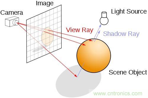 反向追蹤算法正好相反,它是從觀察者的角度出發(fā),只追蹤那些觀察者所能看見(jiàn)的表面投射光。就目前而言,所有3D制作軟件的光線追蹤算法都是采用反向追蹤法,原因是這種算法能夠最大程度地節(jié)省計(jì)算機(jī)的系統(tǒng)資源,而且不會(huì)導(dǎo)致渲染質(zhì)量的下降。