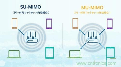 但MIMO(也稱SU-MIMO,即單用戶多輸入多輸出)也有自己的缺陷——會(huì)產(chǎn)生MIMO間隙。簡單來說就是目前我們熟悉的無線路由/AP大都有3-4根天線,但WiFi終端通常只有1-2根天線。而采用MIMO技術(shù)的無線路由/AP同一時(shí)間只能與1個(gè)WiFi終端建立連接和通訊,因此WiFi終端很難全部占用所有傳輸信道,即無法占滿無線路由/AP的全部容量,這種差異就被稱為MIMO間隙。