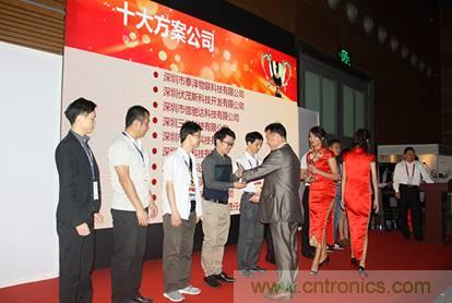圖2: 我愛方案網(wǎng)CEO劉杰博士為十大方案公司頒獎(jiǎng)