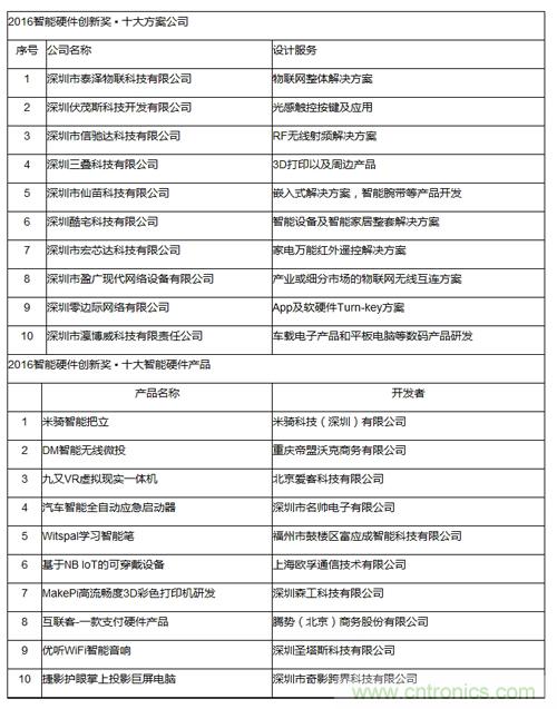 該活動(dòng)旨在發(fā)現(xiàn)中國(guó)智能硬件行業(yè)的創(chuàng)造力和支撐力,樹立行業(yè)的標(biāo)桿,經(jīng)過(guò)專家評(píng)審和網(wǎng)友在線投票,以及專業(yè)行業(yè)協(xié)會(huì)的推薦,共評(píng)選出智能硬件行業(yè)中十大方案公司、十大智能硬件產(chǎn)品。CITE組委會(huì)主任、中國(guó)電子器材總公司常務(wù)副總經(jīng)理、中電會(huì)展與信息傳播有限公司董事長(zhǎng)陳雯海出席了2016智能硬件創(chuàng)新獎(jiǎng)的頒獎(jiǎng)典禮并與為獲獎(jiǎng)團(tuán)隊(duì)頒獎(jiǎng)